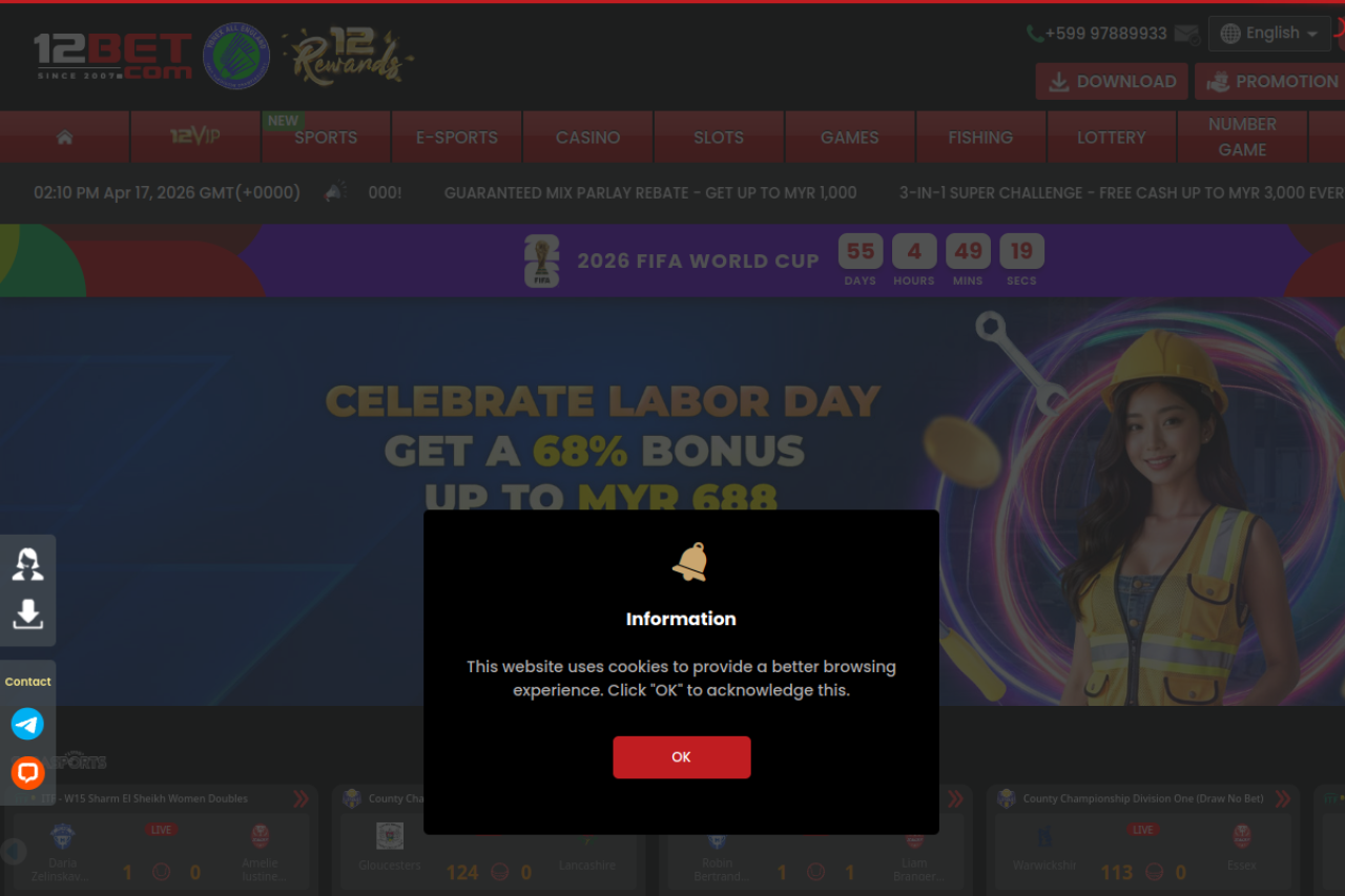 Experience Comprehensive Betting with 12BET: Enjoy sports betting, live casino games, slots, e-sports, and lottery, betting exchange, all in one place. Take advantage of exciting promotions, easy deposits and withdrawals, and a secure & trustworthy platform