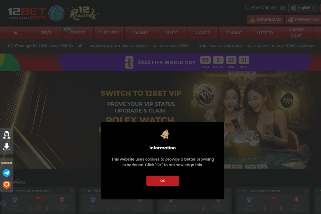 Experience Comprehensive Betting with 12BET: Enjoy sports betting, live casino games, slots, e-sports, and lottery, betting exchange, all in one place. Take advantage of exciting promotions, easy deposits and withdrawals, and a secure & trustworthy platform