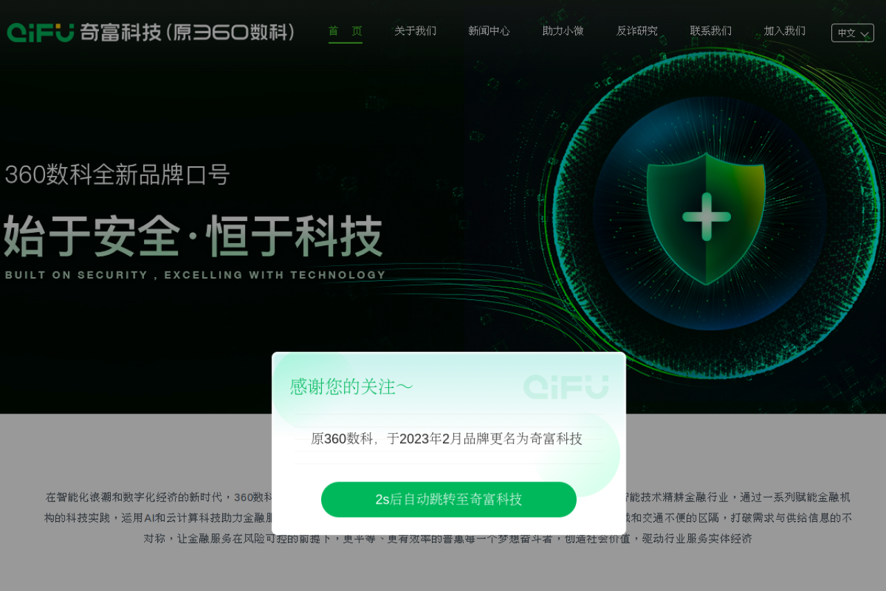 360数科作为一家技术驱动的科技公司,守正创新,凭借互联网安全基因和数据智能技术精耕金融行业,通过一系列赋能金融机构的科技实践,运用AI和云计算科技助力金融服务,提升质效,创造可能,将金融之水引到真正有需之处,穿越广袤地域和交通不便的区隔,打破需求与供给信息的不对称,让金融服务在风险可控的前提下,更平等、更有效率的普惠每一个梦想奋斗者,创造社会价值,驱动行业服务实体经济。