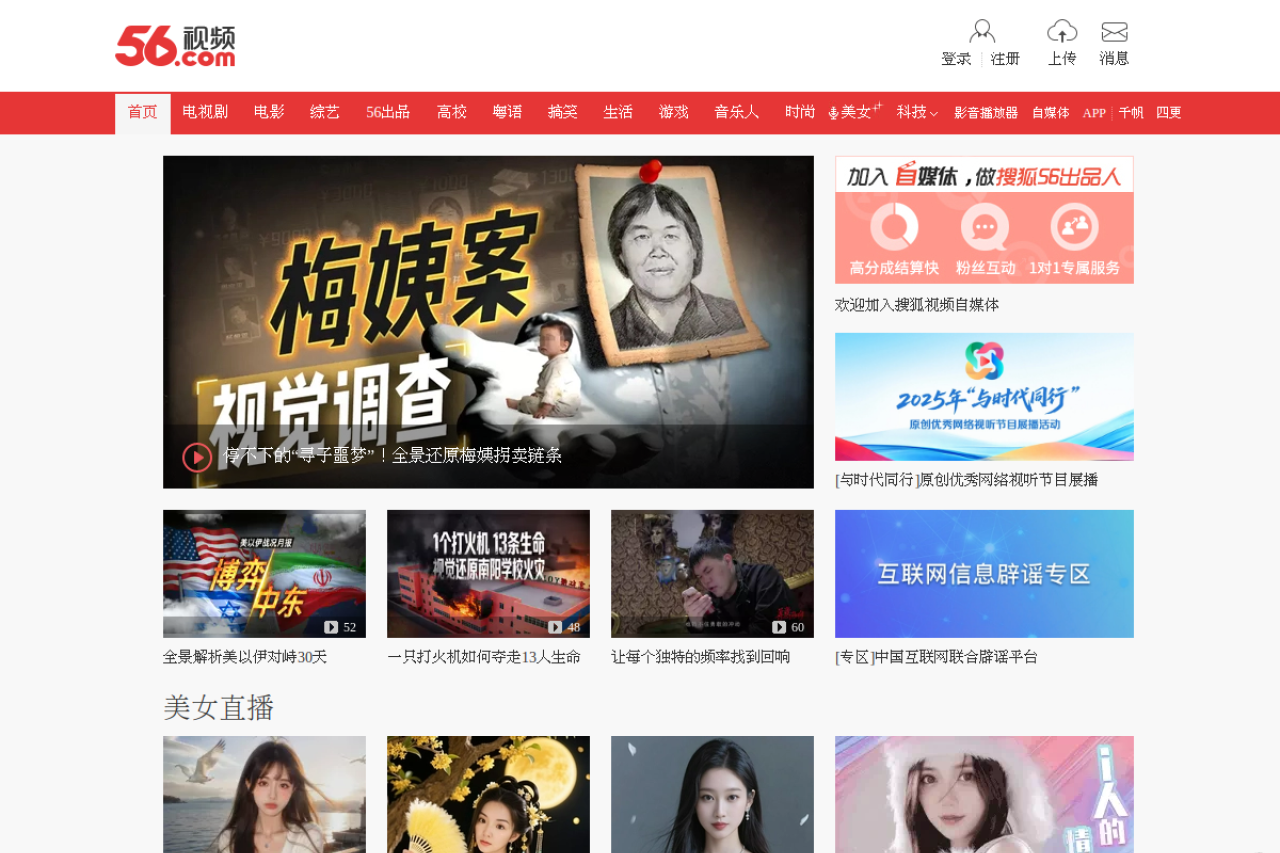 56.com looks like entertainment. Traffic signals point to roughly 1.1M monthly visits. Current AI trust scoring is 22/100.