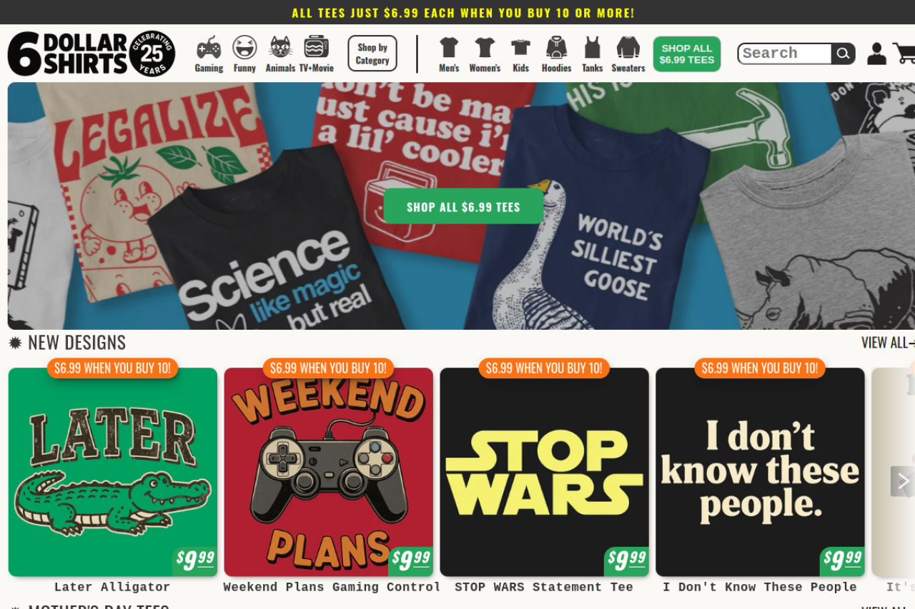 View all 6 alternatives and competitors to 6dollarshirts.com.