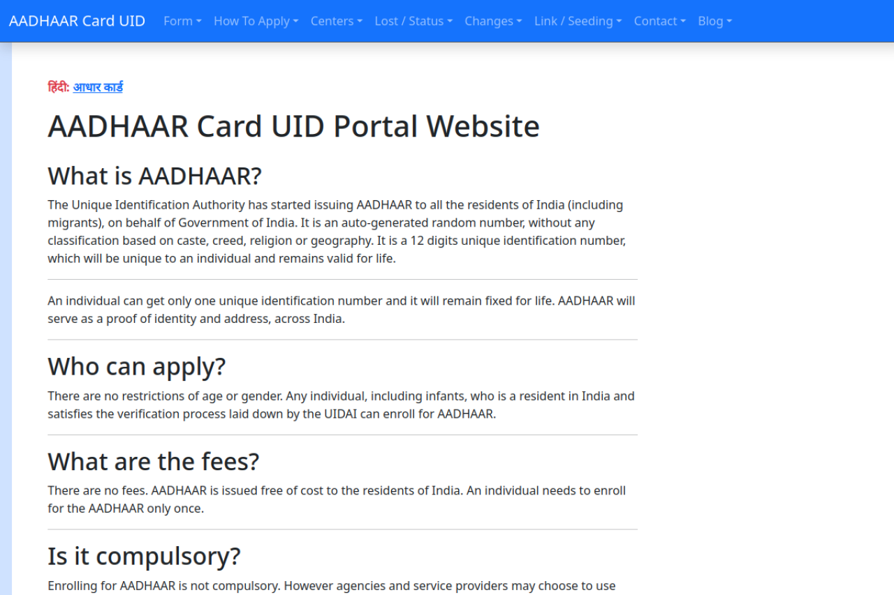 AADHAAR Card UID Portal Website - AADHAAR Card UID
