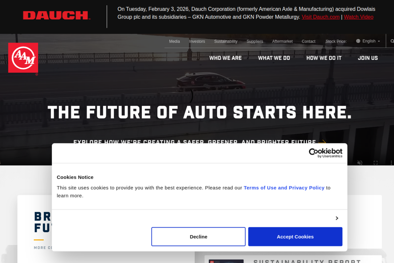 As a leading global Tier 1 Automotive and Mobility Supplier, AAM designs, engineers and manufactures Driveline and Metal Forming technologies to support electric, hybrid and internal combustion vehicles.