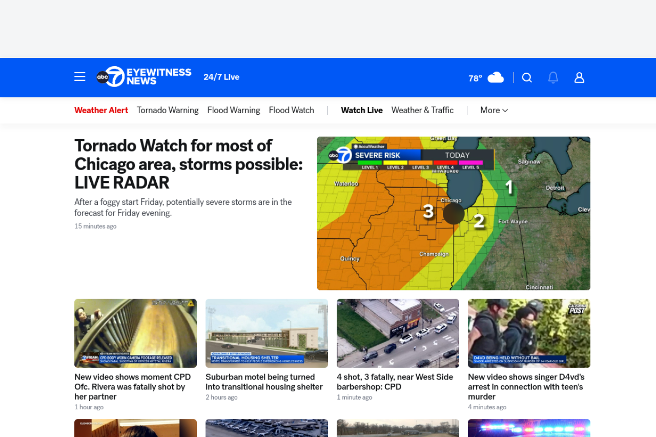 abc7chicago.com looks like news / weather / information. Traffic signals point to roughly 7.3M monthly visits. Current AI trust scoring is 8/100.