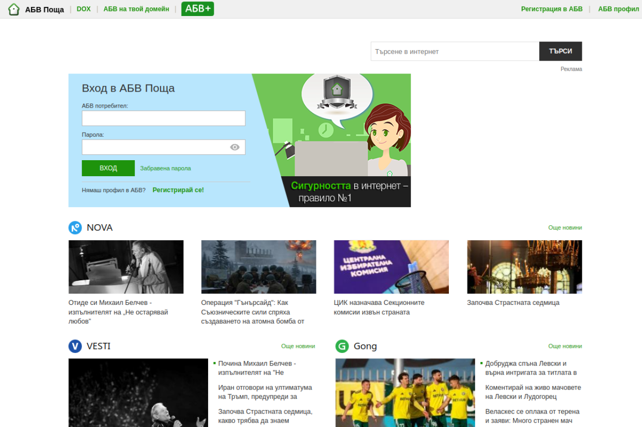 АБВ Поща е бърза, удобна и сигурна! Разполагате с 15 GB пространство, управлявате контакти, а пощата ви е защитена. Писмата ви са навсякъде с вас, с мобилното приложение на АБВ.