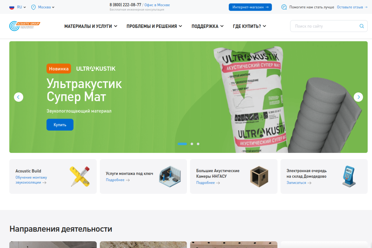 Acoustic Group – это безупречная звукоизоляция виброизоляция и шумоизоляция в квартире, офисе, загородном доме, концертном зале и любом другом коммерческом или общественном помещении в Москве и по России.