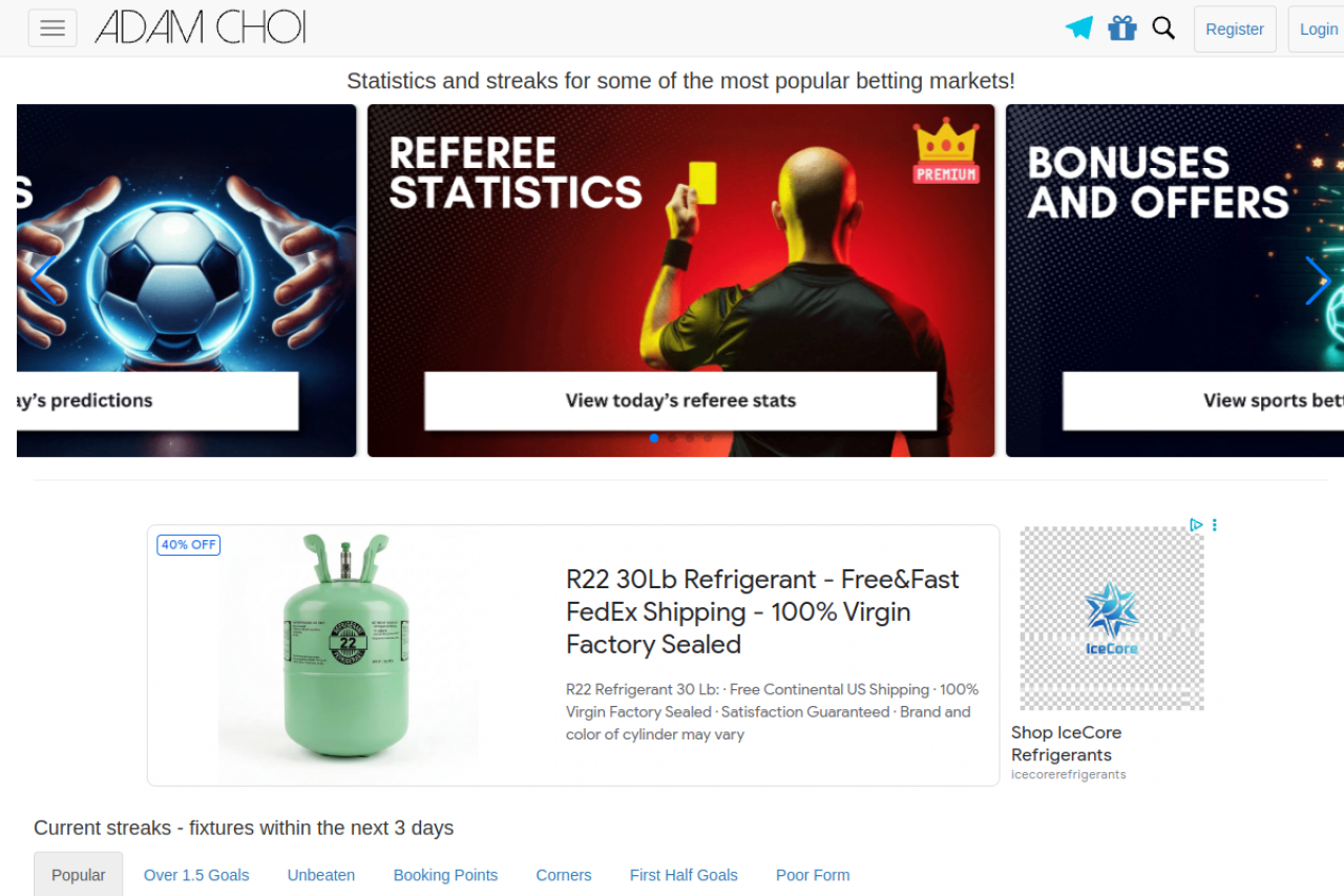 adamchoi.co.uk looks like gambling. Traffic signals point to roughly 212.5K monthly visits. Current AI trust scoring is 35/100.