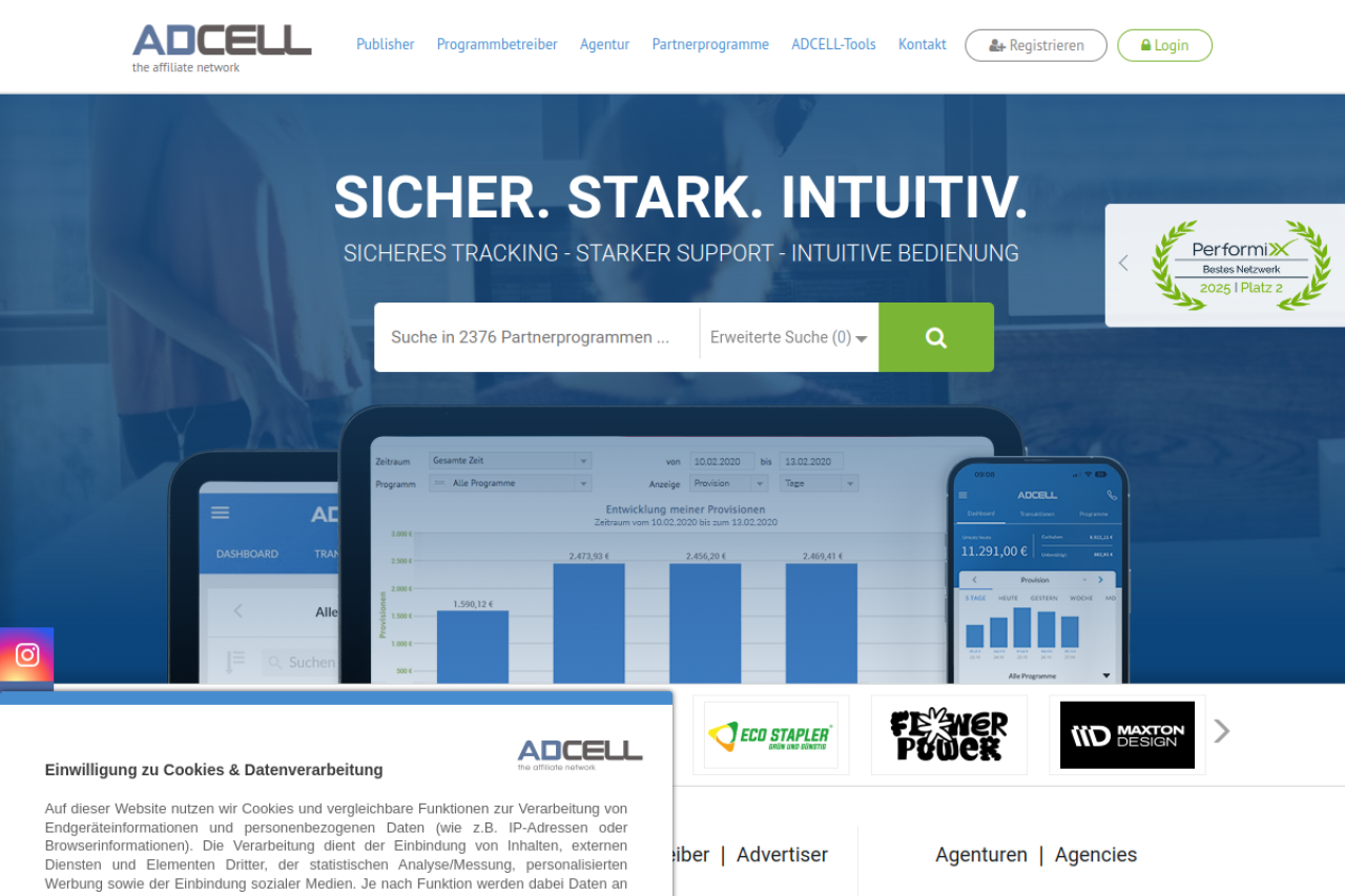Jetzt als Publisher, Agentur oder Advertiser bei ADCELL durchstarten. Kostenlos anmelden und sofort mit 2380 Partnerprogrammen und Affiliate Marketing Geld verdienen.