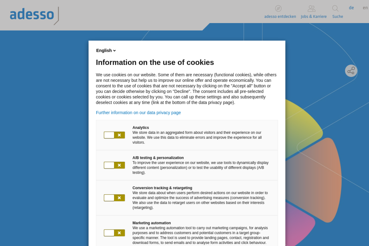 adesso sorgt als unabhängiger IT-Dienstleister durch Beratung und Softwareentwicklung für den Erfolg Ihrer Projekte und die Zukunftssicherheit Ihrer Anwendungen.