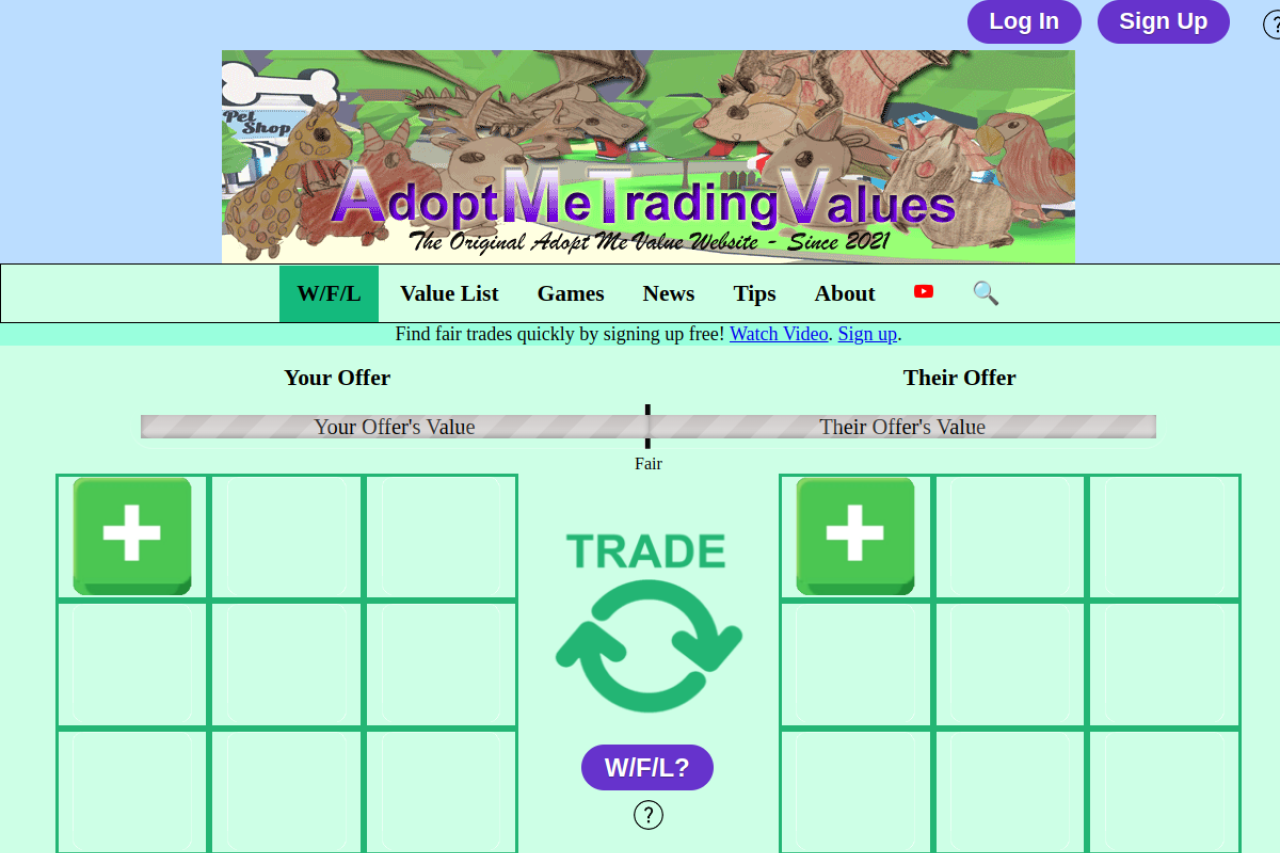 The original values website for Adopt Me. AMTV tries to help and protect players of the Roblox Adopt Me game to avoid scams and big losses but instead to have fun and get their dream pets. Check if trades are fair, make trades with other users, and so much more.