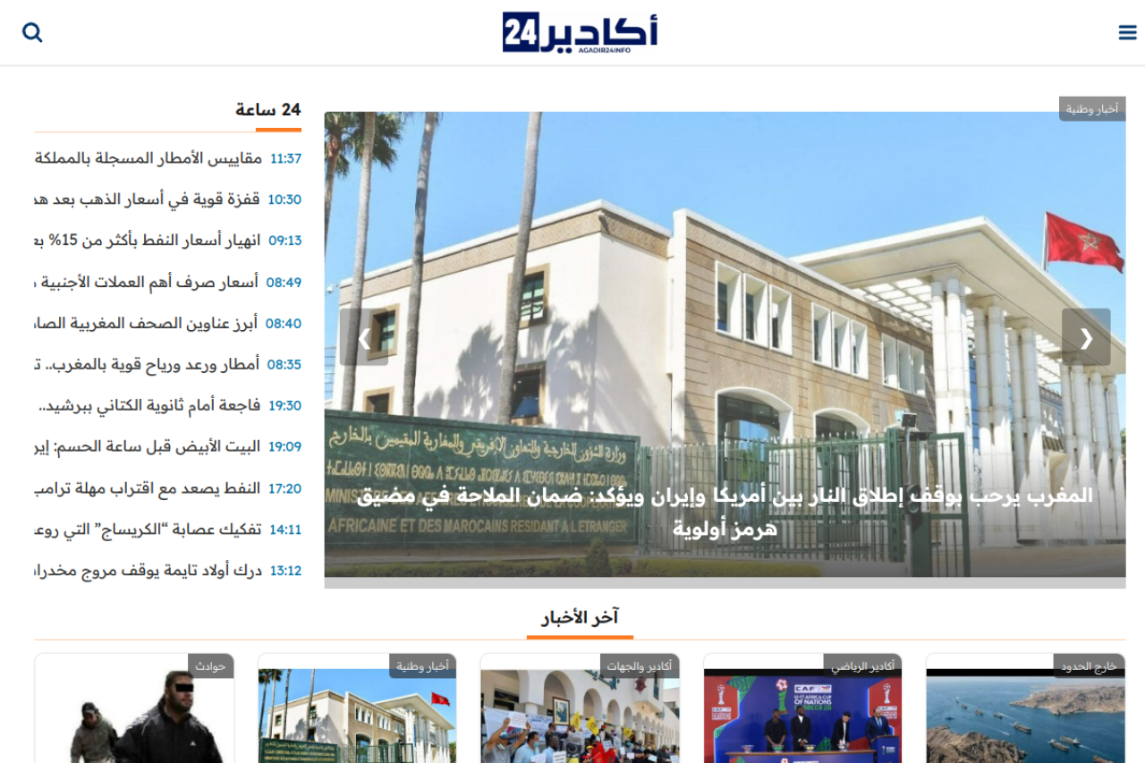agadir24.info looks like news & weather. Traffic signals point to roughly 466.8K monthly visits. Current AI trust scoring is 15/100.