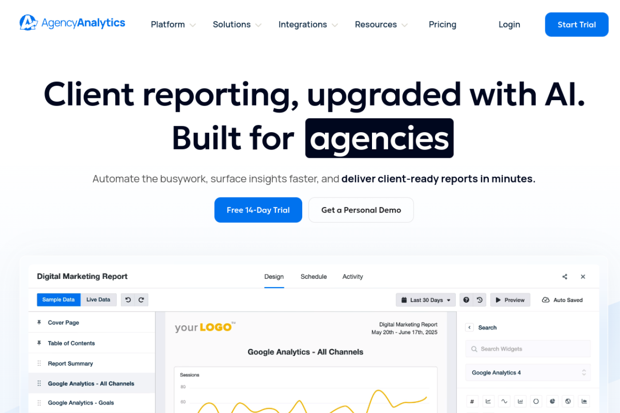 AgencyAnalytics helps marketing agencies scale with automated client reporting. Create custom dashboards and reports for SEO, PPC, social media, and more. 14-Day Free Trial