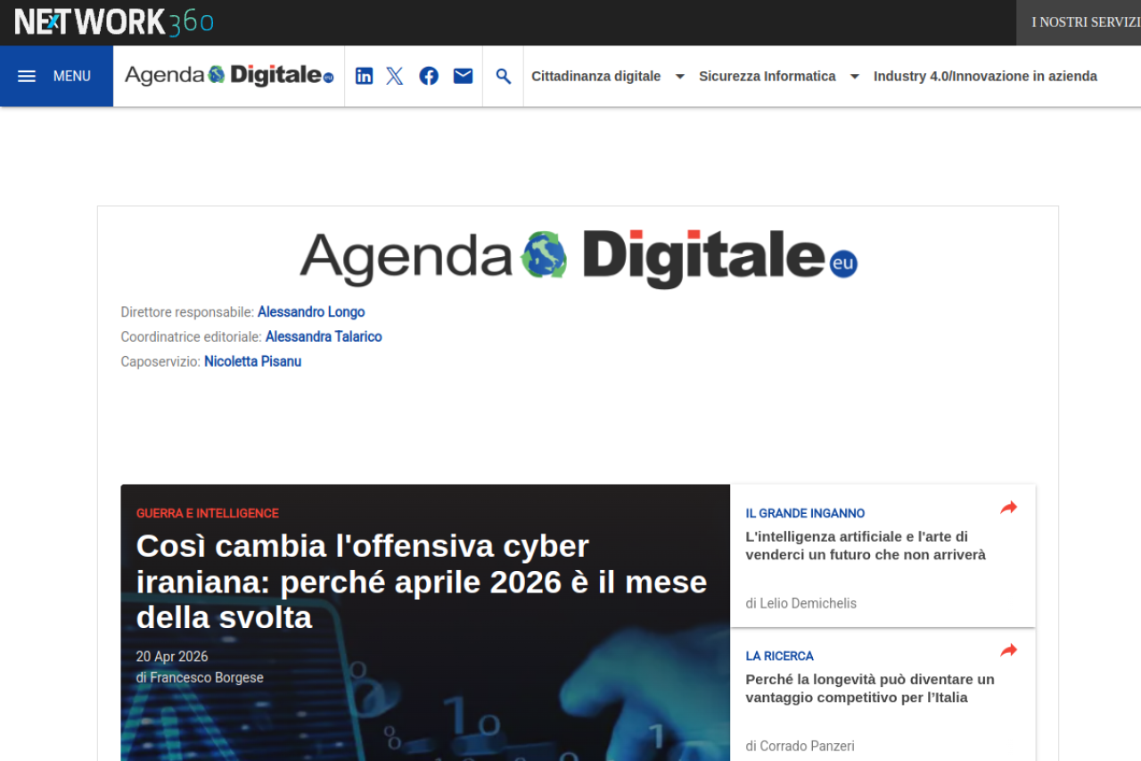 Agenda Digitale è la testata di riferimento per tematiche riguardanti il Digitale e la Pubblica Amministrazione, con approfondimenti su sanità, scuola, documenti, infrastrutture, cittadinanza, sicurezza e molto altro.