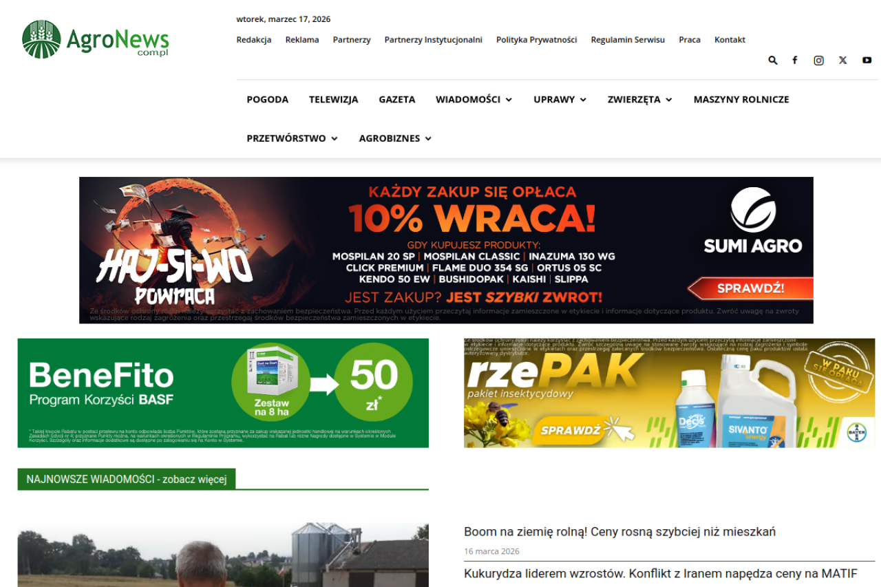 Portal rolny AgroNews - aktualności o środkach ochrony roślin, ceny skupu i wiele więcej. Bądź na bieżąco z najważniejszymi informacjami dla rolników.