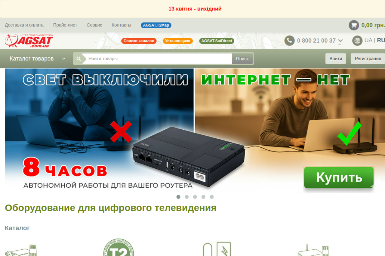 Спутниковое телевидение от интернет-магазина Agsat.com.ua. Оборудования для приема спутникового тв.