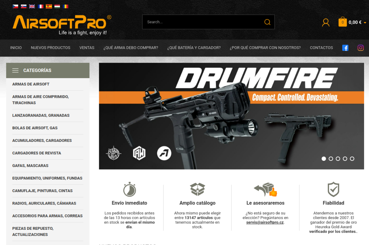 Eshop con suministros de airsoft. Ofrecemos actualizaciones y repuestos, armas, municiones, baterías y equipos de protección.