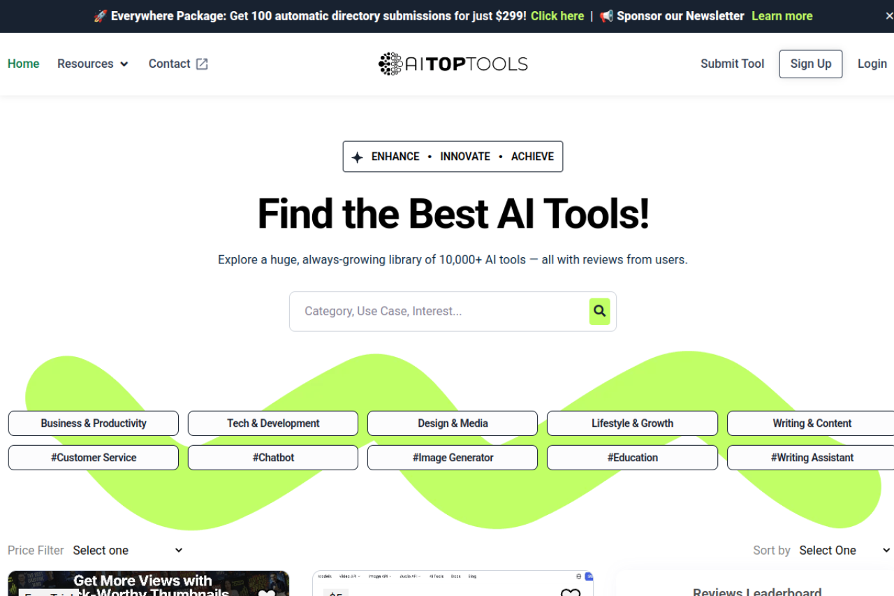 Find the best AI tools and boost productivity - explore a huge, always-growing library of 10,000+ AI tools, all accompanied by user reviews.