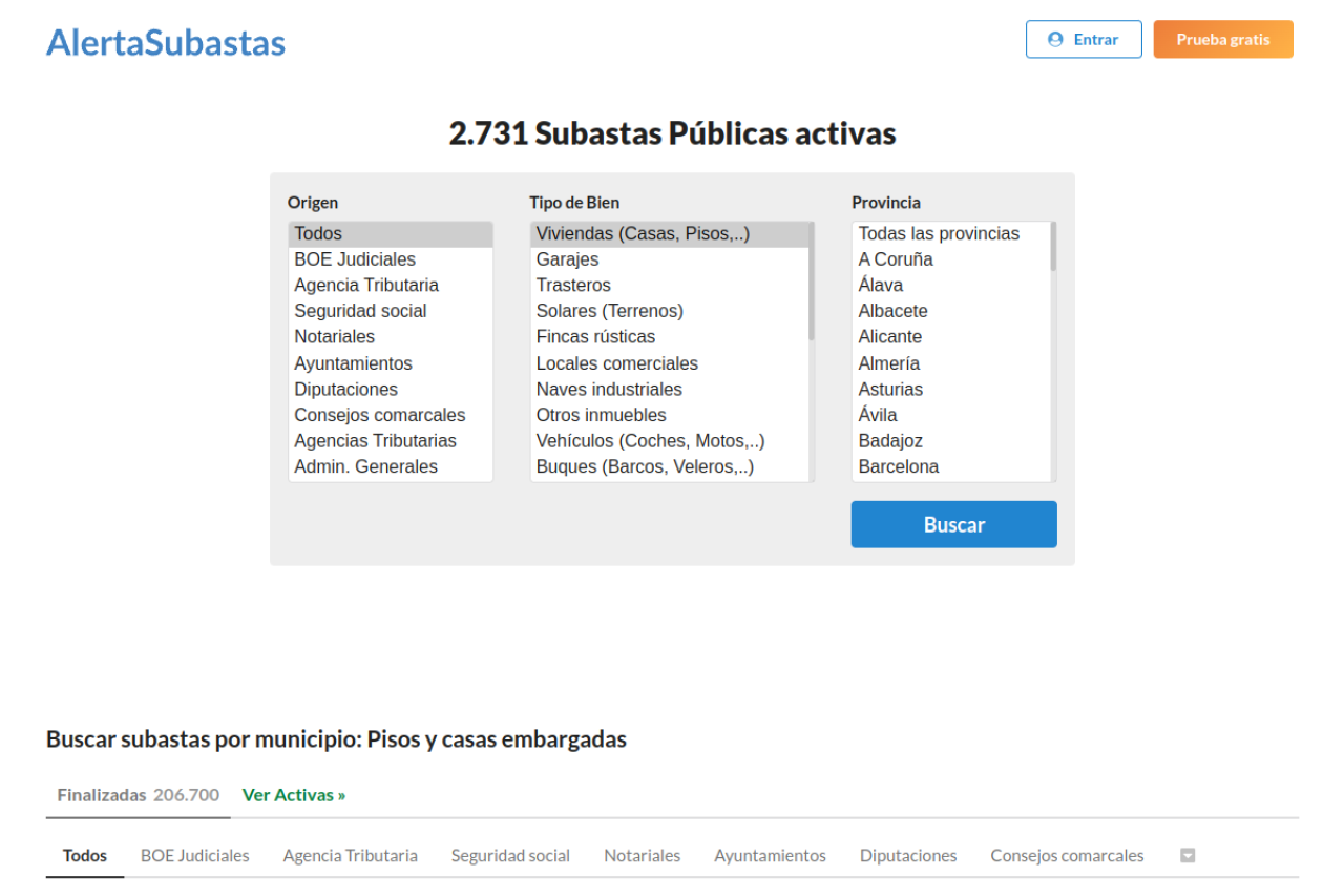 2.768 Subastas activas de BOE, Judiciales, Notariales, Agencia Tributaria, Seguridad Social. Todas las subastas públicas cada día en tu email