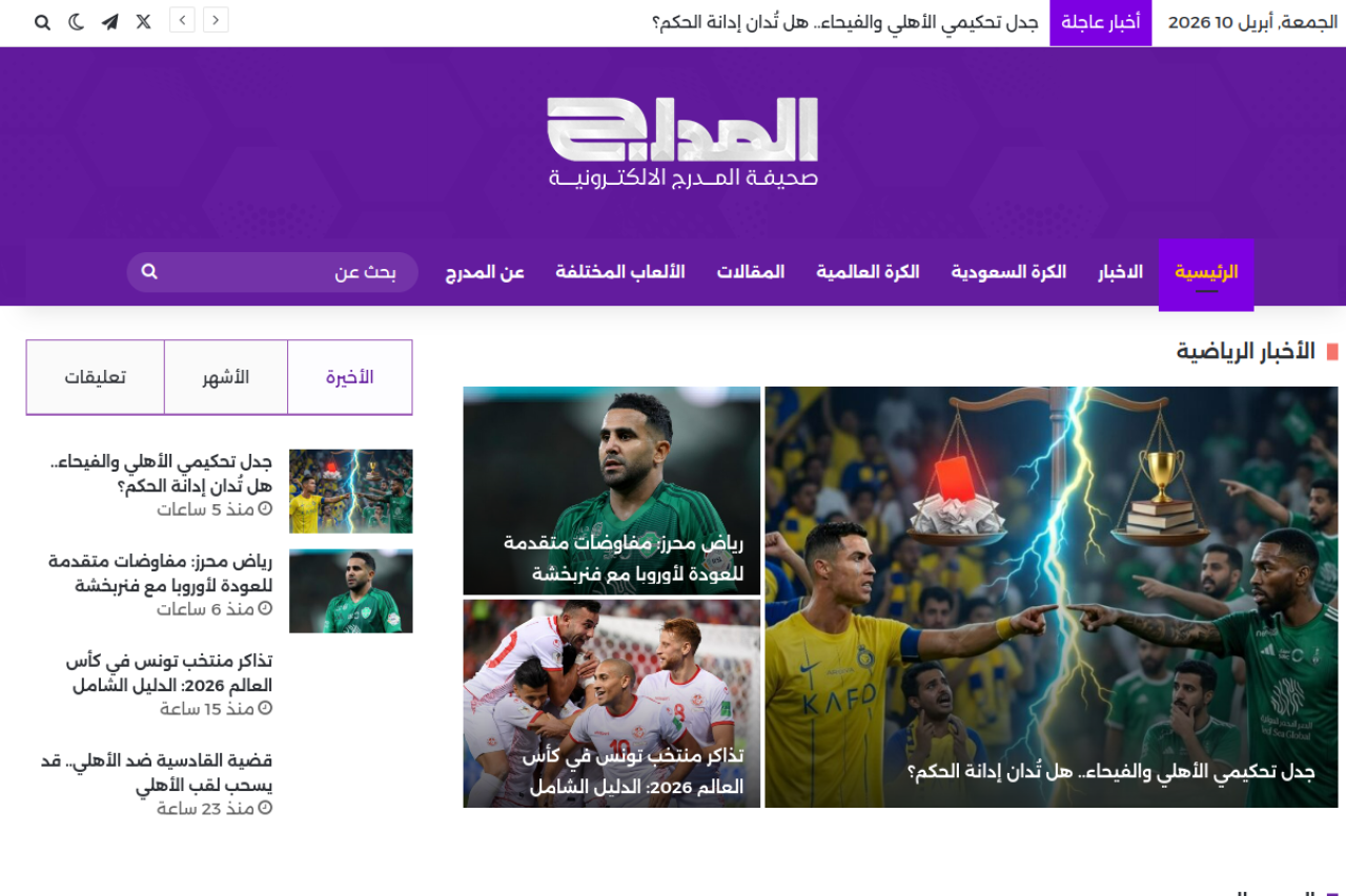 صحيفة إلكترونية رياضية مرخصة من وزارة الإعلام في الممكلة العربية السعودية، تأخذك في رحلة مثيرة إلى عالم كرة القدم في المملكة العربية السعودية وخارجها. تعنى “المدرج” بتغطية شاملة لآخر الأخبار والأحداث الرياضية، خاصة في عالم كرة القدم.