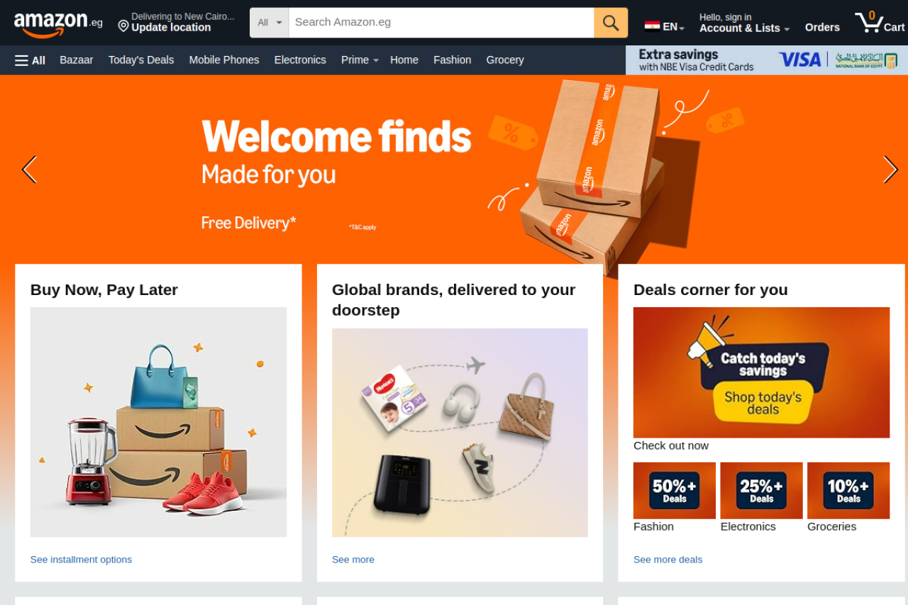 Find everything you need on Amazon. Low Prices, Fast Shipping, Cash on Delivery & Easy Returns on millions of items in Cairo, Alexandria, Egypt. Try Prime for FREE and enjoy unlimited fast and FREE delivery. Shop now and explore the largest selection of everyday essentials, groceries, fashion, beauty, electronics and more.