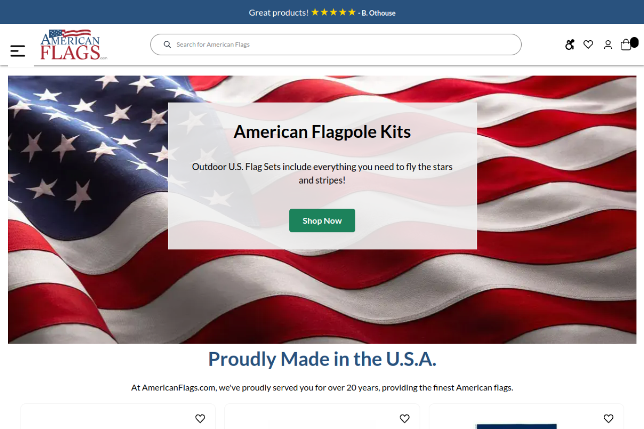 americanflags.com looks like shopping. Traffic signals point to roughly 115.8K monthly visits. Current AI trust scoring is 15/100.