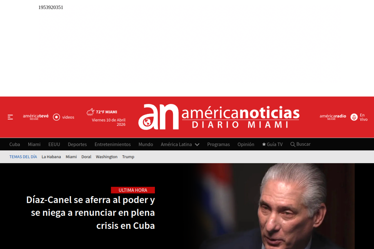 América Noticias Diario Miami es la plataforma digital de América TeVé que informa sobre la actualidad de Cuba y sobre el exilio cubano, su cobertura incluye a Cuba, noticias locales de Miami y el ámbito nacional en Estados Unidos, política y economía así como América Latina y Europa