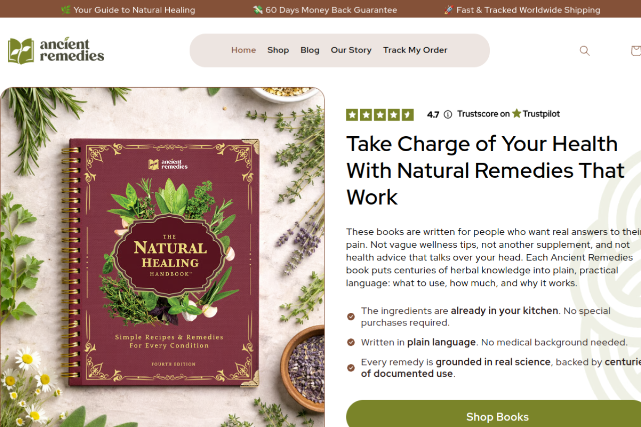 ancientremedies.com looks like health & fitness. Traffic signals point to roughly 1.2M monthly visits. Current AI trust scoring is 15/100.