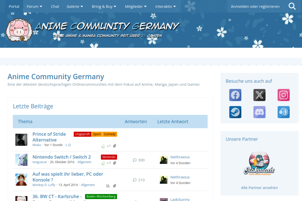 Eine der ältesten deutschsprachigen Onlinecommunities mit dem Fokus auf Anime, Manga, Japan und Games!