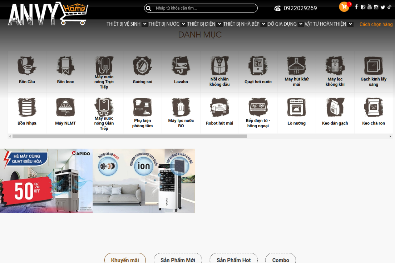 AnVyHome.com >>> SÀN THƯƠNG MẠI ĐIỆN TỬ phân phối GIÁ KHO các sản phẩm về THIẾT BỊ VỆ SINH -THIẾT BỊ ĐIỆN NƯỚC - THIẾT BỊ NHÀ BẾP - ĐỒ GIA DỤNG - VẬT TƯ XÂY DỰNG