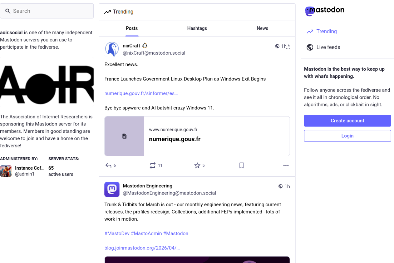 aoir.social looks like technology & computing. Traffic signals point to roughly 1.7K monthly visits. Current AI trust scoring is 15/100.