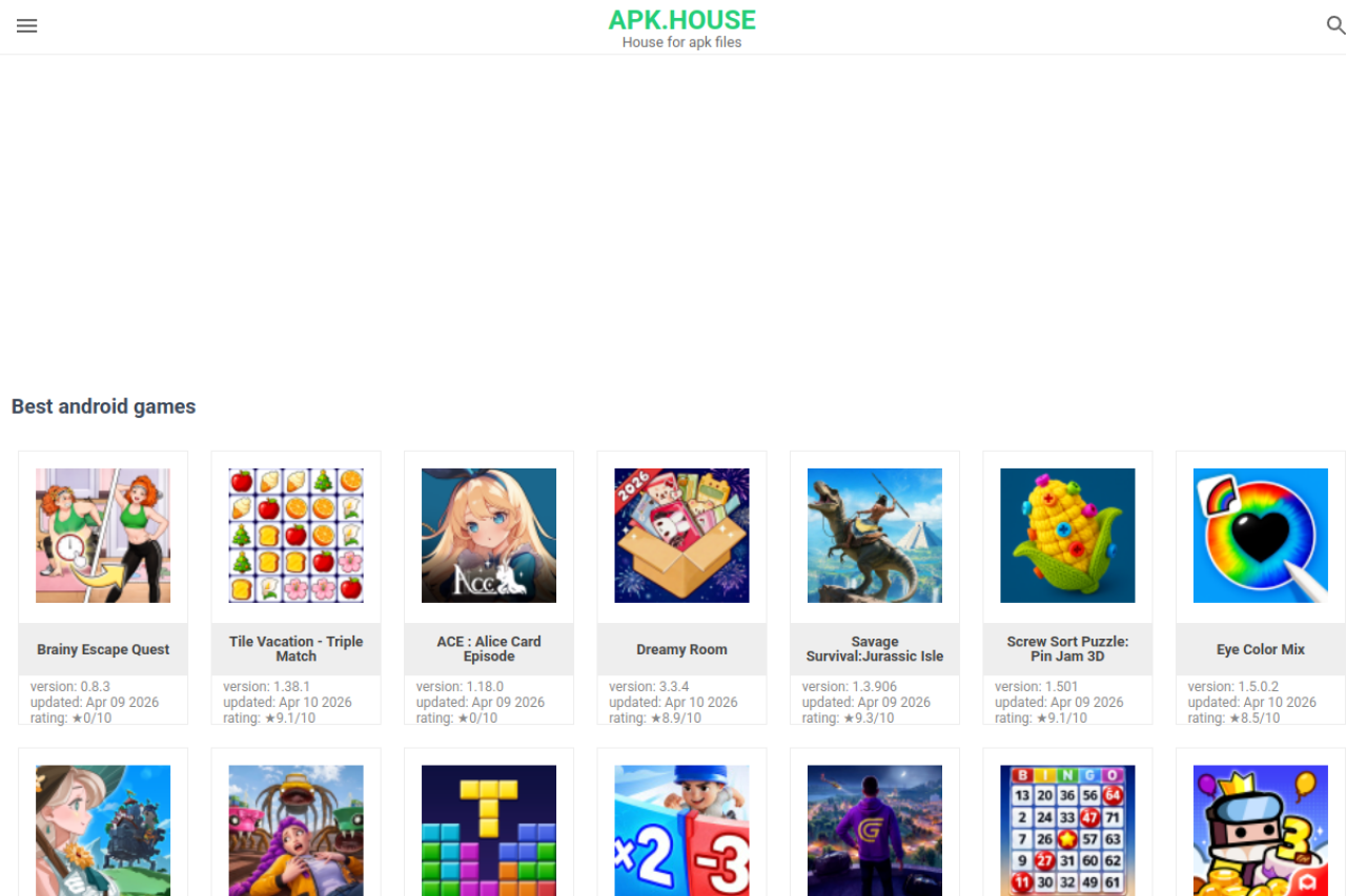 apk.house looks like games. Traffic signals point to roughly 72.8K monthly visits. Current AI trust scoring is 75/100.