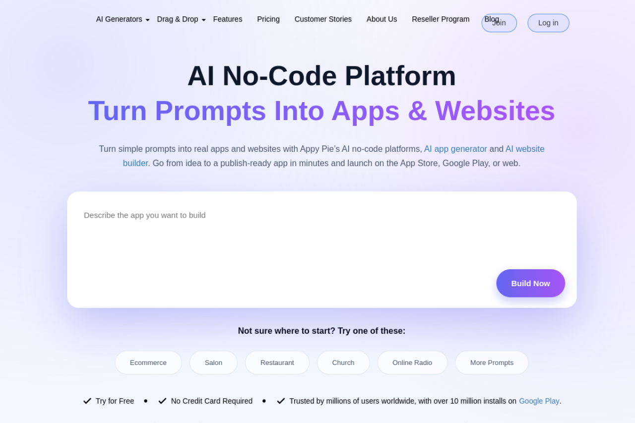 Turn simple prompts into real apps and websites with Appy Pie’s AI no-code platform. Go from idea to a publish-ready app in minutes and launch on the App Store, Google Play, or web.
