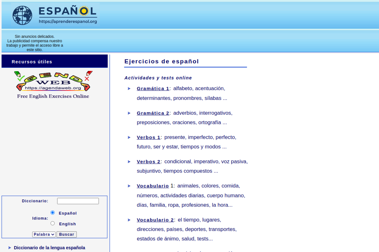 Ejercicios de español para aprender y practicar gramática, verbos, vocabulario, lecturas, audiciones, dictados, vídeos, cuentos y canciones. Recursos ELE para todos los niveles.