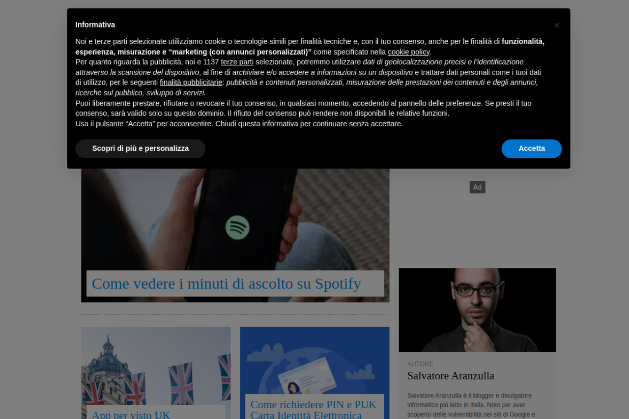 aranzulla.it looks like technology & computing. Traffic signals point to roughly 6.5M monthly visits. Current AI trust scoring is 15/100.
