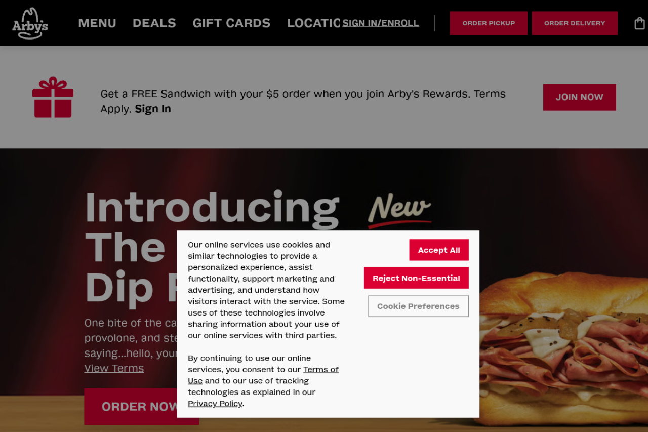 arbys.com looks like food & drink. Traffic signals point to roughly 3.8M monthly visits. Current AI trust scoring is 5/100.