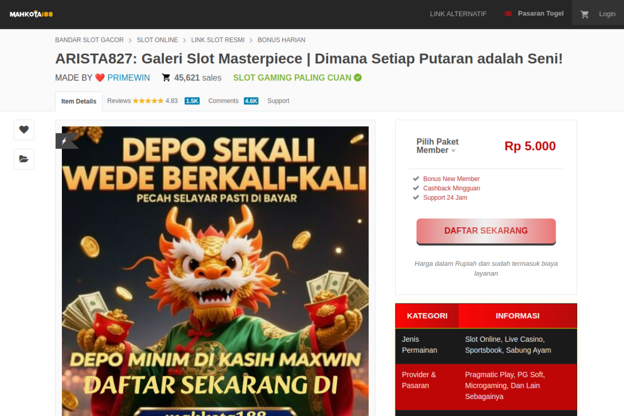 Untuk mereka yang menghargai keindahan dalam kemenangan. ARISTA827 adalah galeri slot kuratorial yang mempersembahkan masterpiece RTP sempurna dan koreografi bonus yang elegan. Di ruang pamer kami, setiap game seperti Gates of Olympus dan Sweet Bonanza adalah karya seni interaktif yang siap menghadirkan pengalaman maxwin tak terlupakan. Konfirmasi keanggotaan Anda dan masuki galeri eksklusif ini!