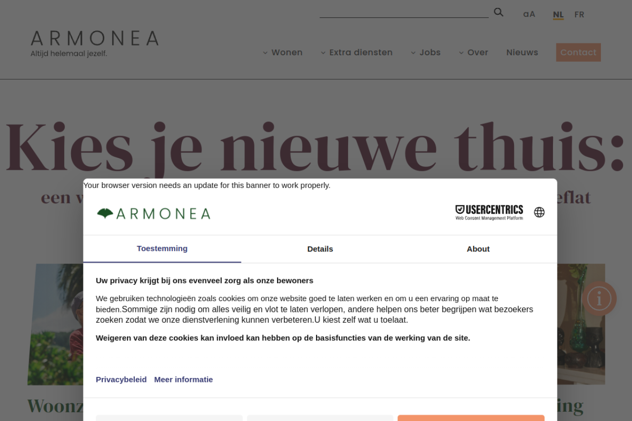Bij Armonea beschouwen en waarderen we iedereen als een uniek persoon, elk met zijn wensen en voorkeuren. Woonzorgcentra, service residentie, assistentiewoningen, thuisverzorging in België.