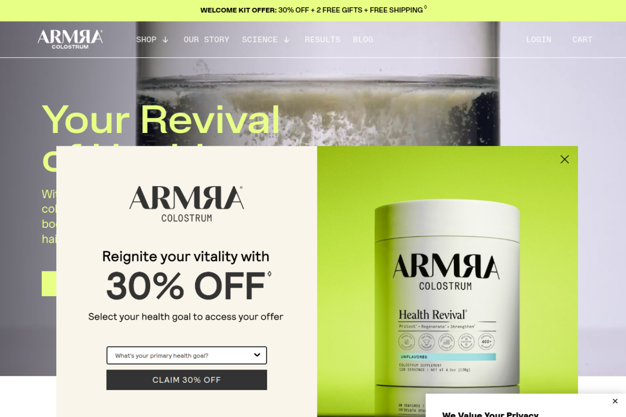 Modern living breaks down your immune barrier. ARMRA Colostrum™ is the bioactive food that builds it back. Physician-founded and science-backed, ARMRA is premium bovine colostrum with 400+ bioactive nutrients that empower your body with the blueprint to revitalize health for thousands of benefits you can see and feel.