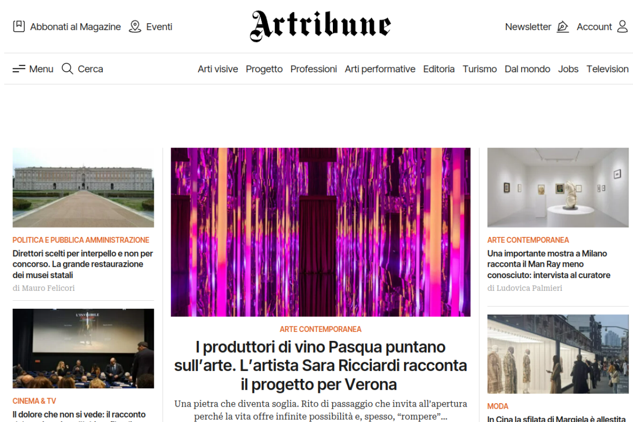 Artribune è una testata di arte e cultura contemporanea. Si rivolge a tutti coloro che amano l’arte, la creatività, l’architettura, il design, la moda, la musica, la letteratura, il cinema e il teatro di ricerca, i viaggi di qualità, l’enogastronomia.