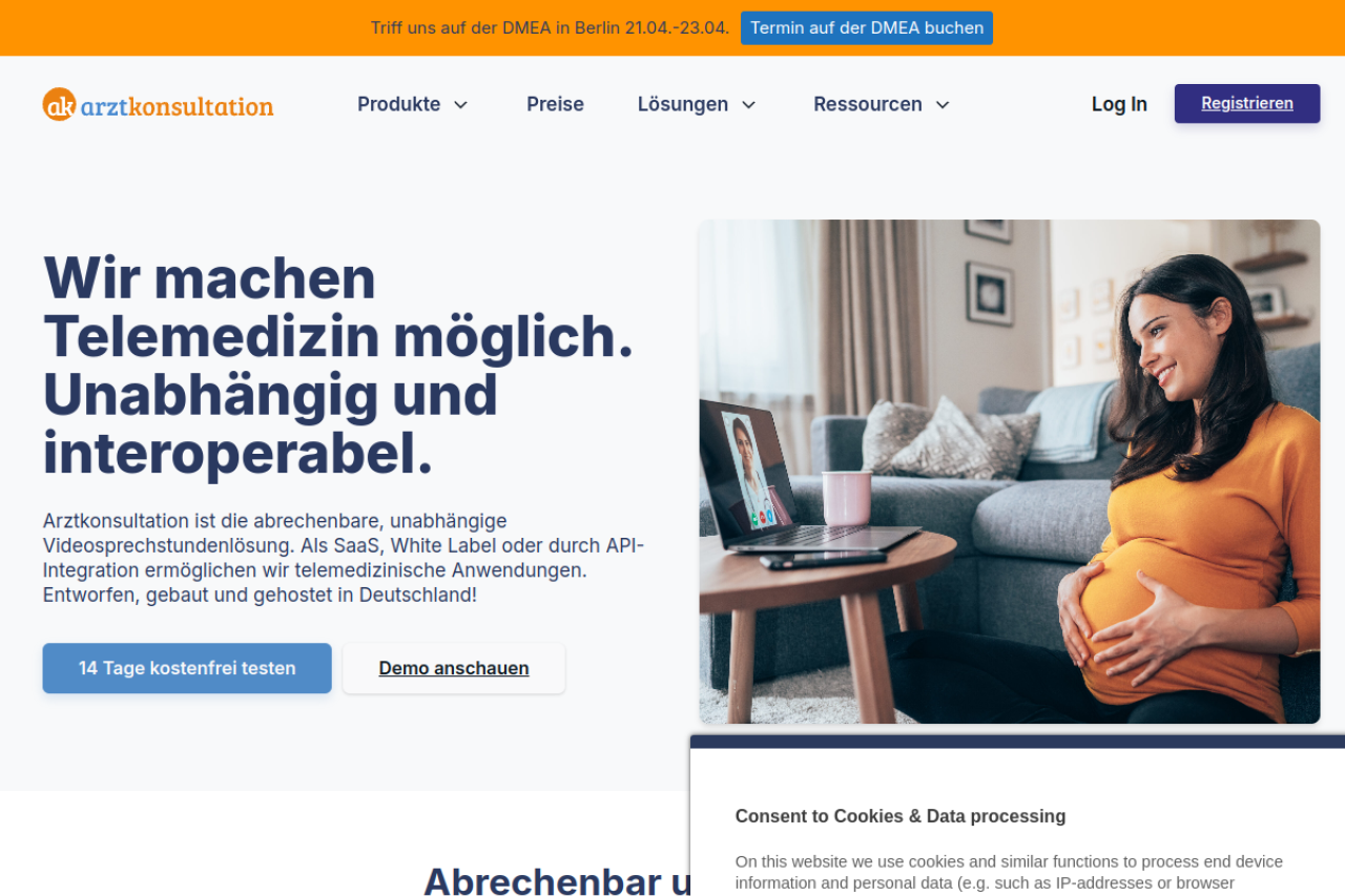 Deutschlands zertifizierte Videosprechstunde für Arztpraxen, Kliniken | Auch als Whitelabel & API ✓ Ende-zu-Ende-Verschlüsselt & DSGVO-konform
