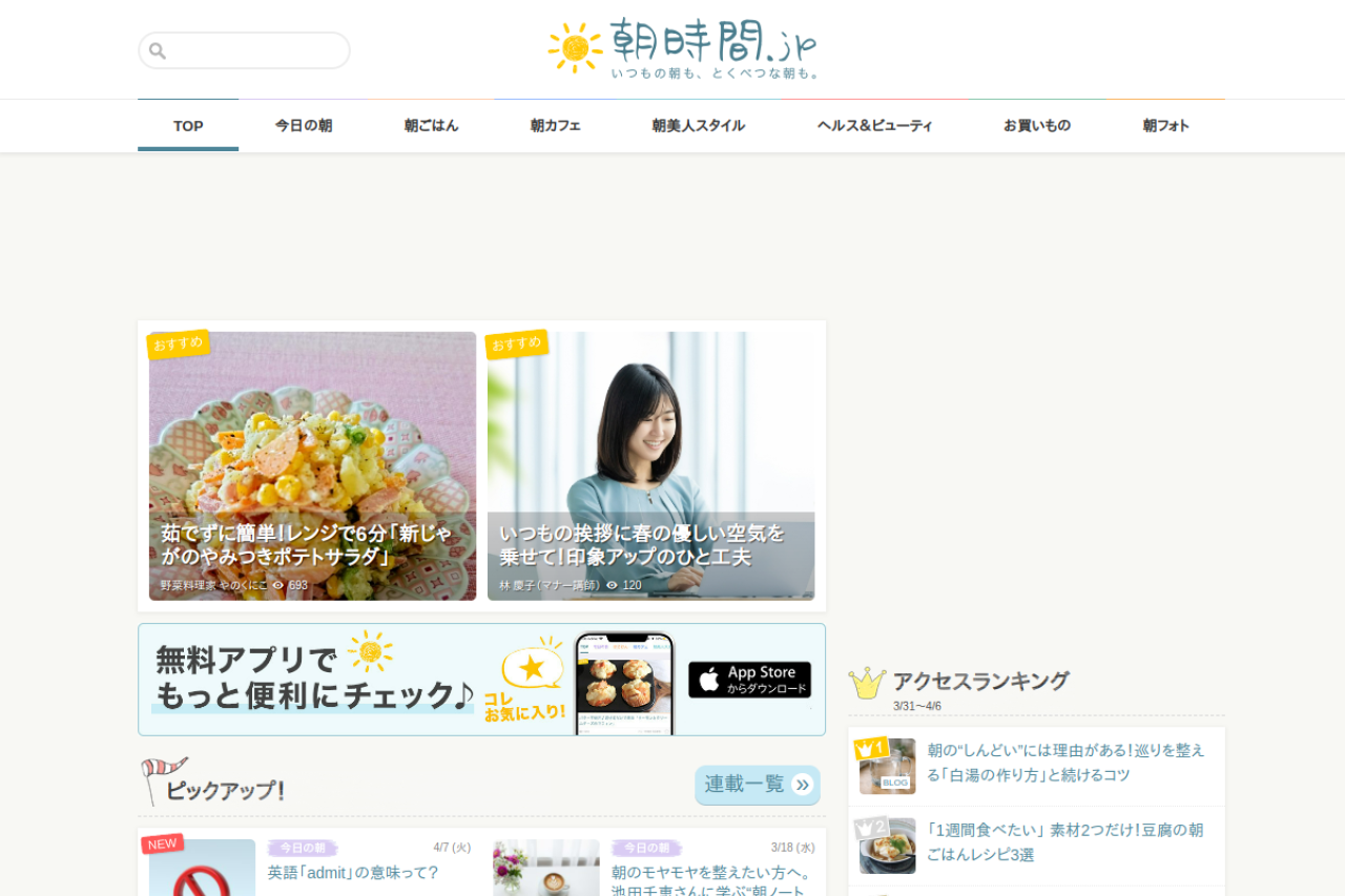 朝を楽しく、心地よく、効率的に過ごすヒントが満載の日本最大級の朝型ライフスタイルマガジン。朝食・お弁当レシピ、モーニングルーティン、朝活、早起きのコツ、ヨガ、ダイエット、スキンケア・メイク、エクササイズ、ストレッチ、朝家事、片づけ、英会話、インタビューなど。