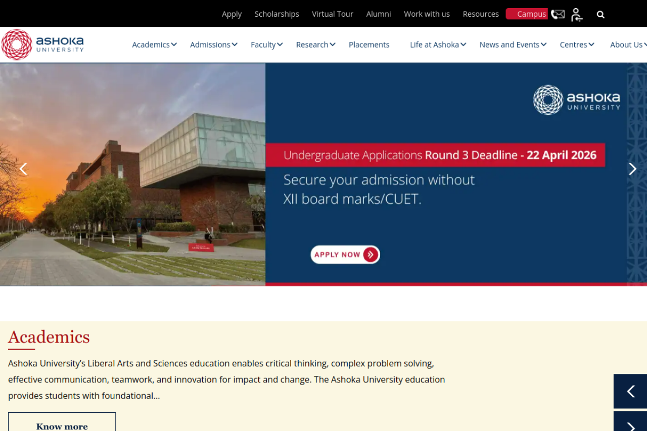 Ashoka University listed in top ten private universities in India for arts, science & Mathematics. Get admission with the best university/colleges for Liberal Arts Education. Ashoka University has tie-ups with top international universities to provide world class education.