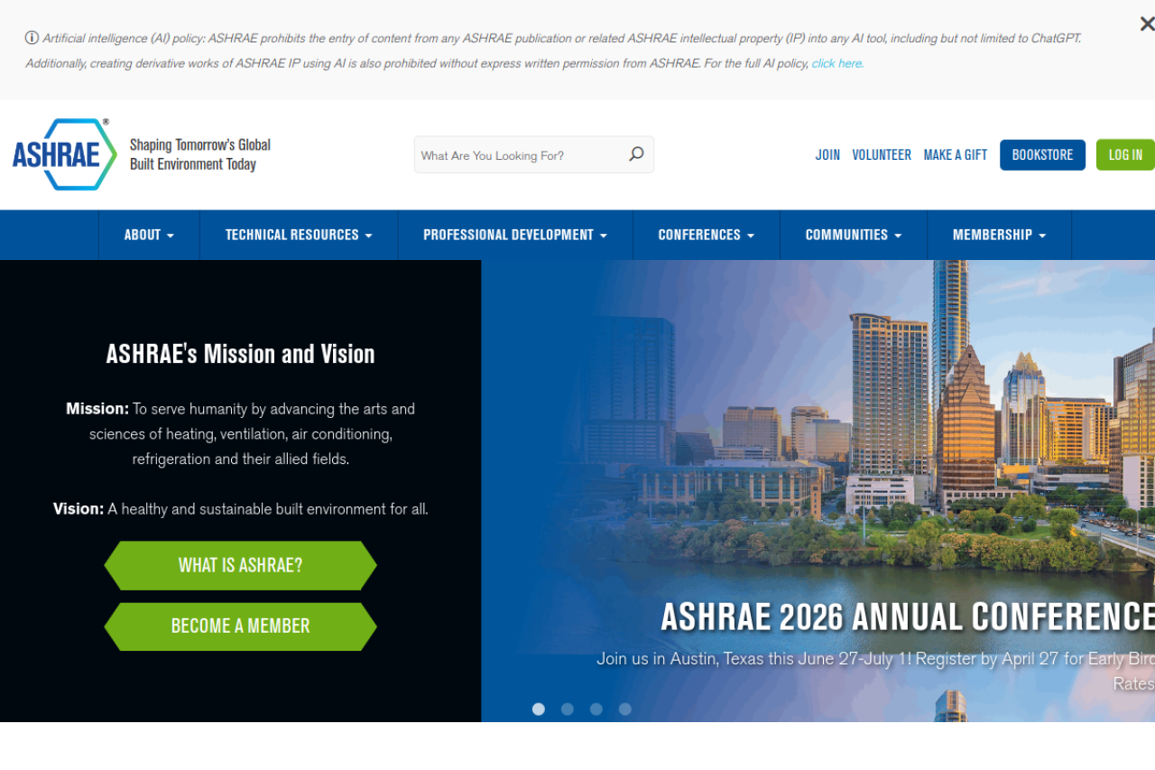 ashrae.org looks like business & industrial. Traffic signals point to roughly 343.9K monthly visits. Current AI trust scoring is 5/100.