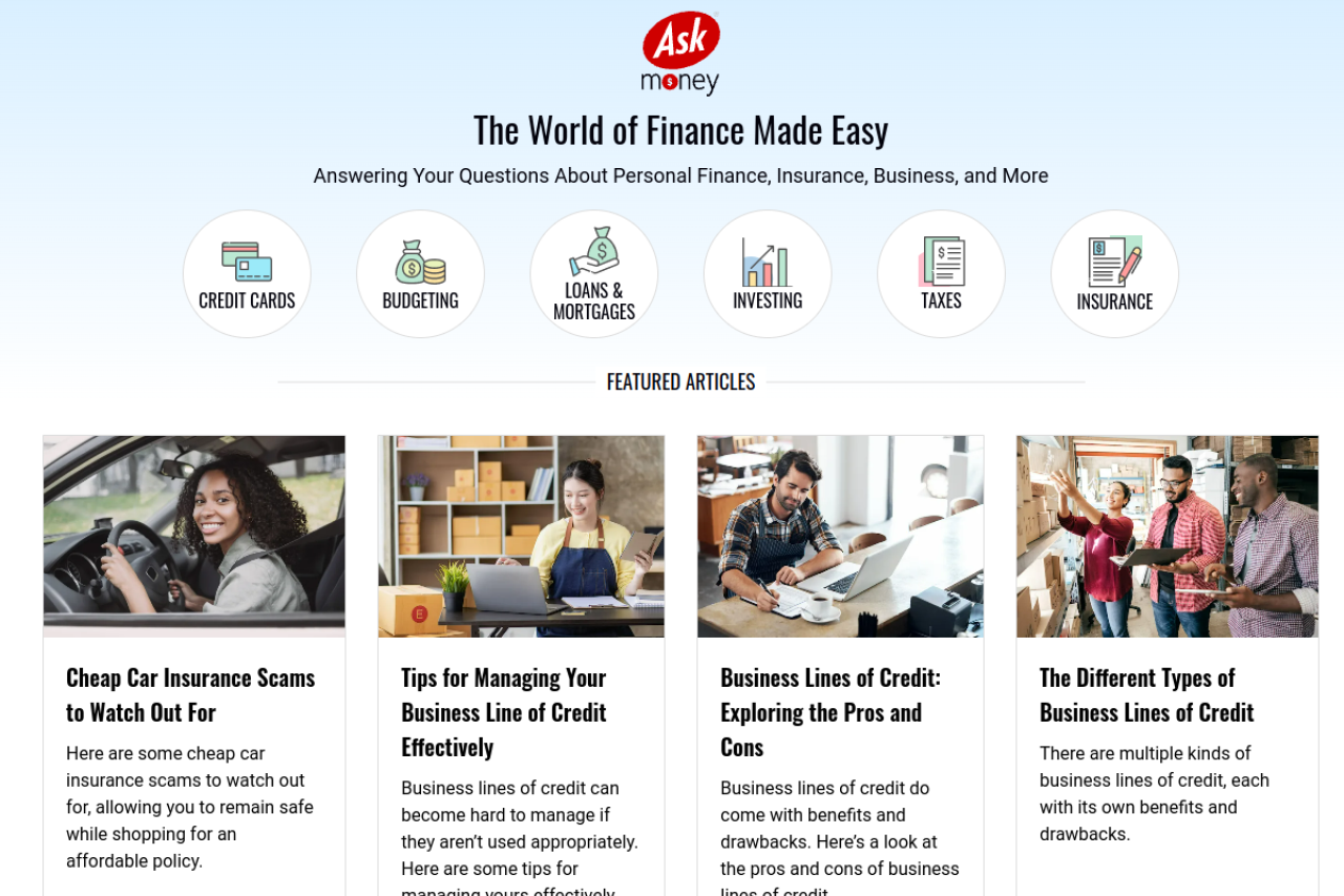 Navigating the world of personal finance can get complicated. Ask Money supports you with detailed resources and timely recommendations that help you set and achieve financial goals.