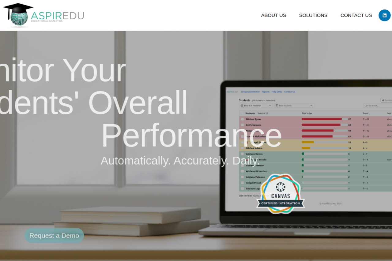 aspiredu.com looks like education. Traffic signals point to roughly 1.8K monthly visits. Current AI trust scoring is 5/100.