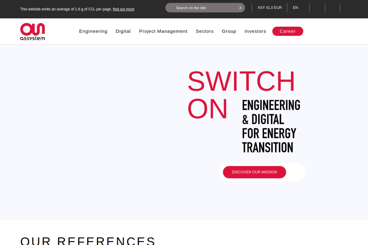 assystem.com looks like business & industrial. Traffic signals point to roughly 76.4K monthly visits. Current AI trust scoring is 5/100.