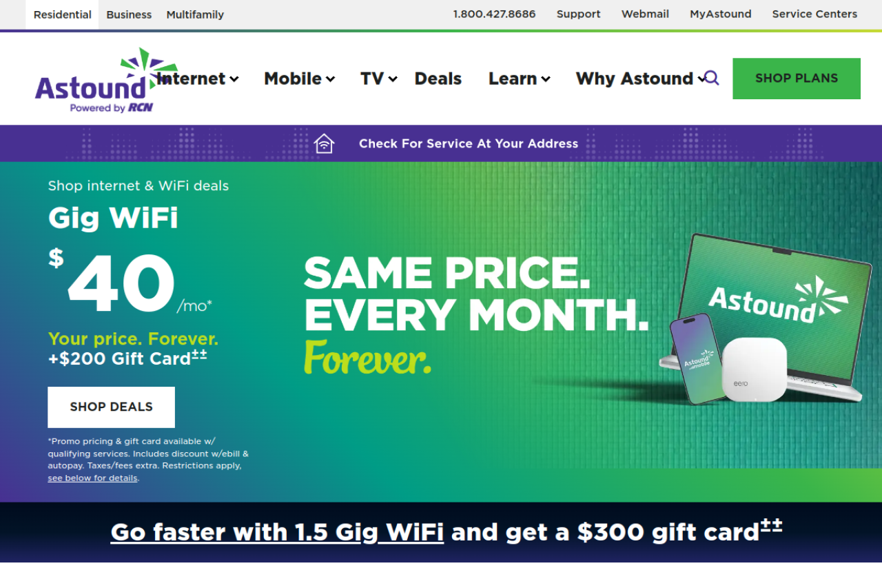 Astound Broadband provides reliable high speed internet, mobile phone, TV, and streaming services at great prices. Shop our best deals online.