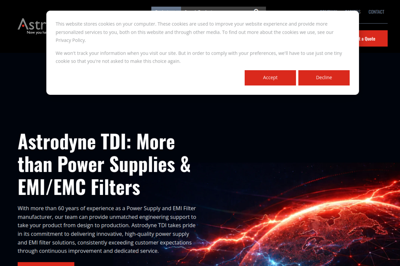 Astrodyne TDI is a leading EMI/RFI/EMC and power supplies manufacturer with over 60 years of experience. Request a quote to find a custom solution today.