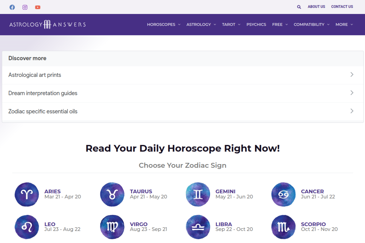 astrologyanswers.com looks like religion & spirituality. Traffic signals point to roughly 1.4M monthly visits. Current AI trust scoring is 25/100.