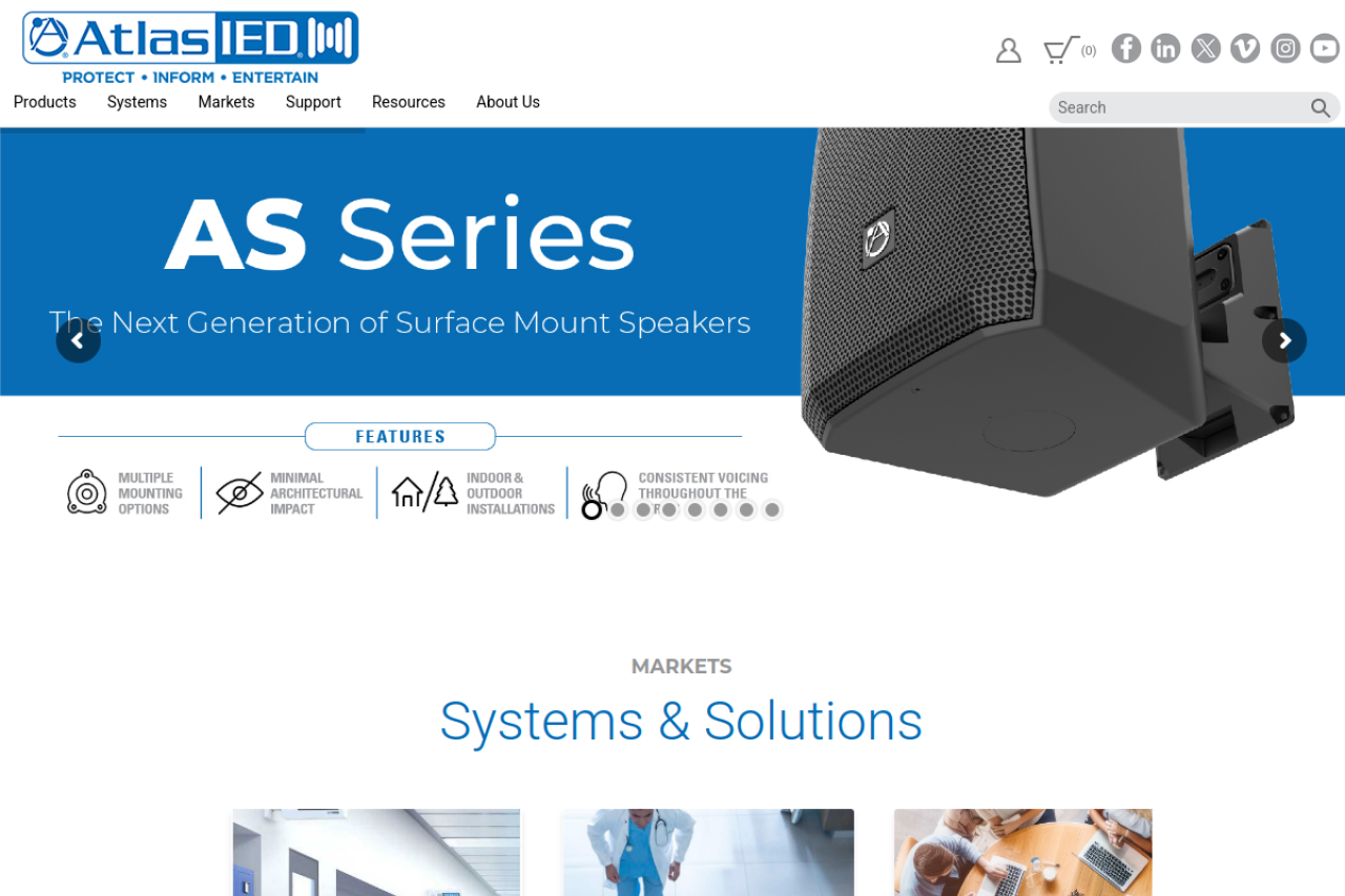 AtlasIED provides audio solutions that enhance communication in commercial spaces. Explore our range of amplifiers, paging & VOIP systems, speakers & more.